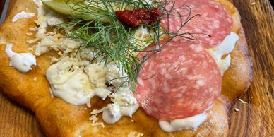 Zoltán backt für Euch leckere, traditionelle Lángos – nebst Lángos-Variationen! Außerdem gibt es die beliebten würzigen Schnitzel ungarischer Art vom Schwein oder Hühnchenbrust, Zigeunergulasch und süße Palatschinken - das Original!